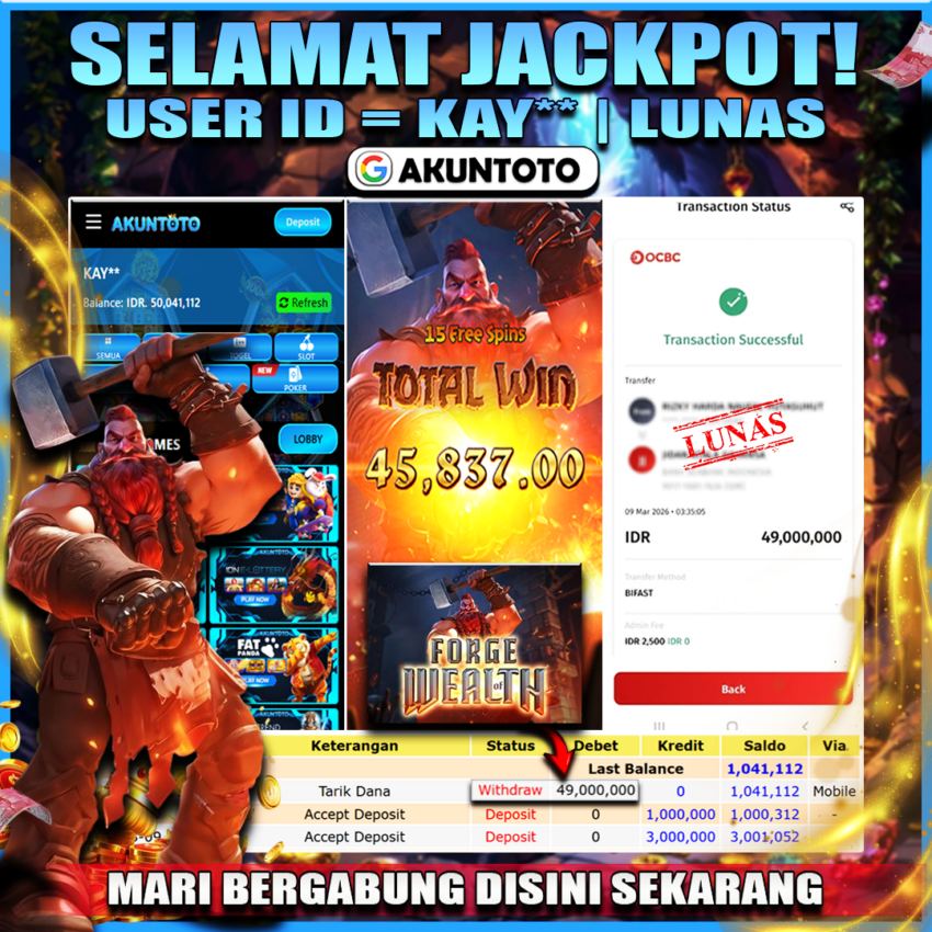 AKUNTOTO JACKPOT JACKPOT SLOT FORGE WEALTH Rp49.000.000 , SENIN 09 MARET 2026