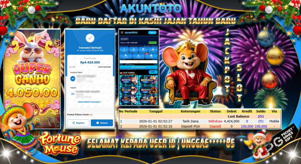 AKUNTOTO JACKPOT FORTUNE MOUSE Rp4.000.000 KAMIS 01 JANUARI 2025