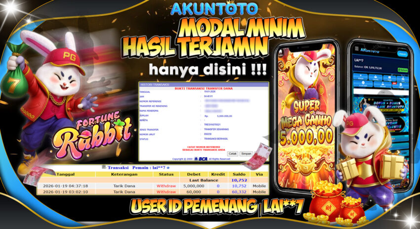 AKUNTOTO JACKPOT SLOT FORTUNE RABBIT RP 5.000.000 , SENIN 19 JANUARI 2026