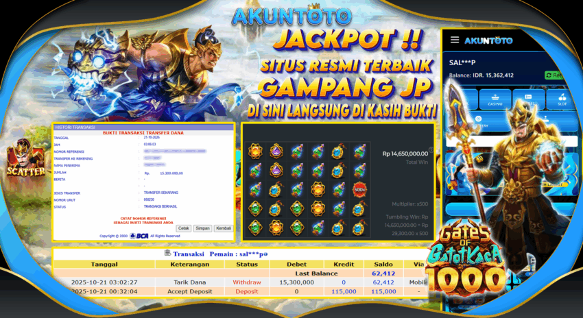 AKUNTOTO JACKPOT SLOT GATES OF GATOT KACA 1000 Rp15.300.000 SELASA 21 OKTOBER 2025