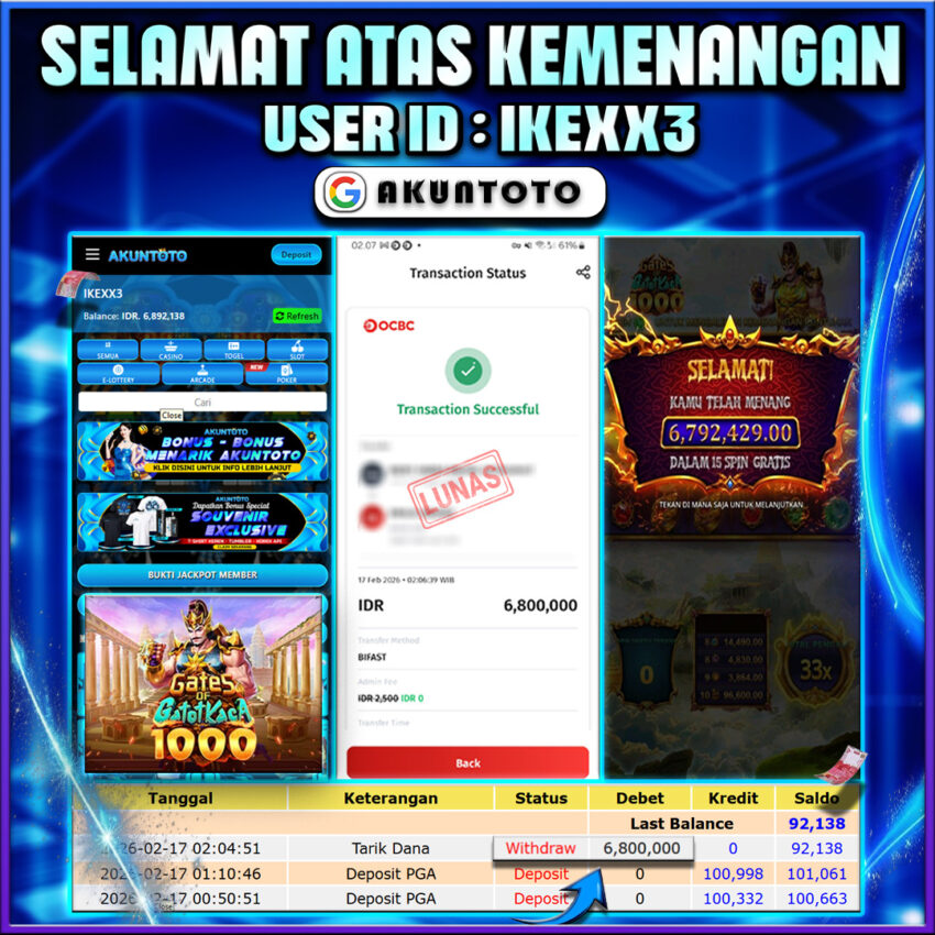 AKUNTOTO JACKPOT SLOT GATES OF GATOTKACA Rp 6.800.000 SELASA , 17 FEBRUARI 2026