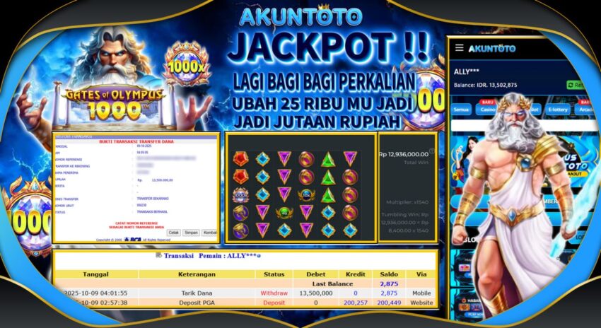 AKUNTOTO JACKPOT SLOT GATES OF OLYMPUS 1000 Rp 13.500.000 KAMIS 09 OKTOBER 2025