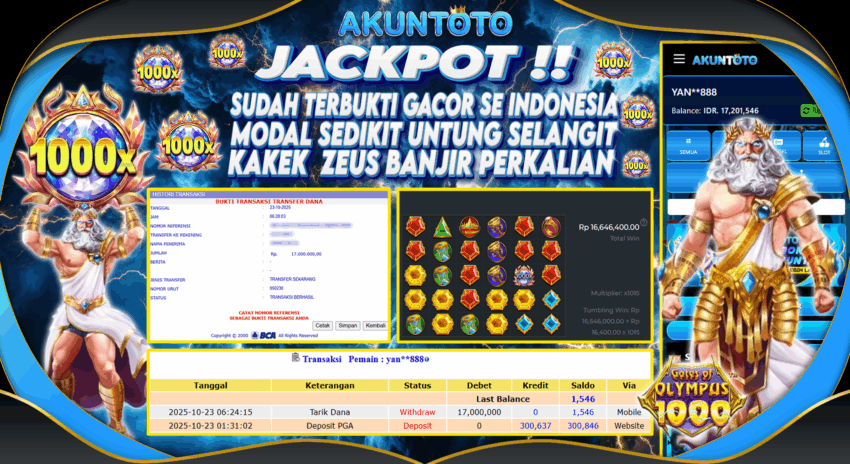 AKUNTOTO JACKPOT SLOT GATES OF OLYMPUS 1000 Rp 17.000.000 KAMIS 23 OKTOBER 2025