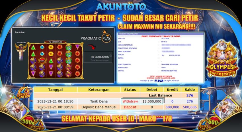 AKUNTOTO JACKPOT GATES OF OLYMPUS SUPER SCATTER1000 Rp13.000.000 MINGGU 21 DESEMBER 2025