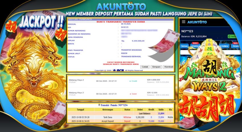 AKUNTOTO JACKPOT SLOT MAHJONG WAYS 2 Rp 9.200.000 RABU 08 OKTOBER 2025