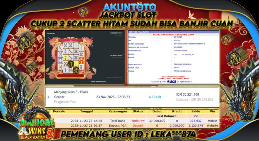 AKUNTOTO JACKPOT SLOT MAHJONG WINS 3 BLACK SCATTER Rp30.000.000 SENIN 24 NOVEMBER 2025