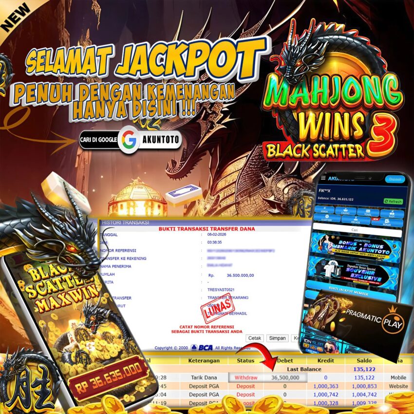 AKUNTOTO JACKPOT SLOT MAHJONG WINS BLACK SCATTER 3 RP 36.500.000 , MINGGU 08 FEBRUARY 2026