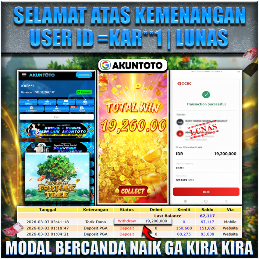 AKUNTOTO JACKPOT JACKPOT SLOT PROSPERITY FORTUNE TREE Rp 19.200.000 , SELASA 03 MARET 2026
