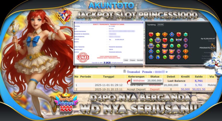 AKUNTOTO JACKPOT SLOT STARLIGHT PRINCESS 1000 Rp20.000.000 SABTUN 01 NOVEMBER 2025