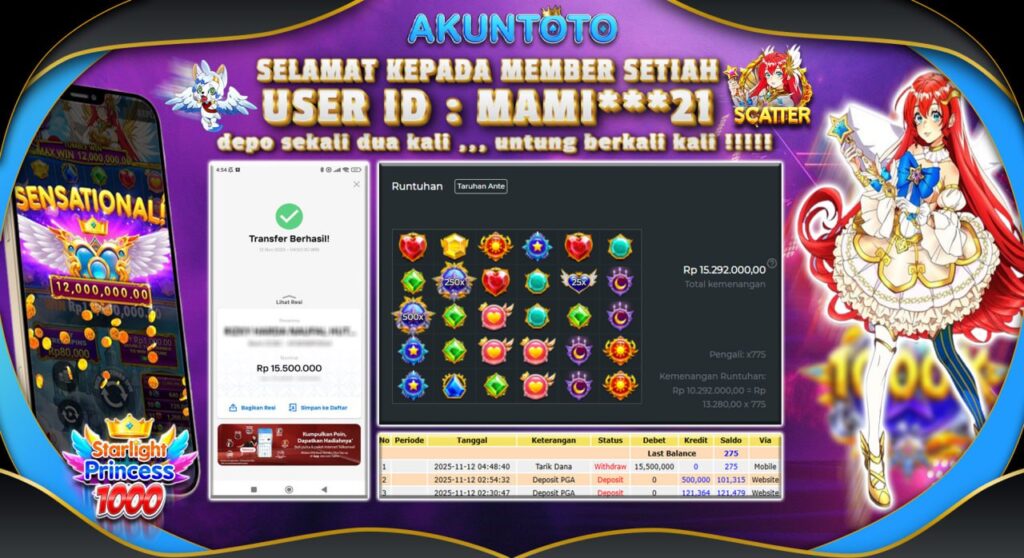 AKUNTOTO JACKPOT SLOT STARLIGHT PRINCESS1000 Rp15.000.000 RABU 12 NOVEMBER 2025