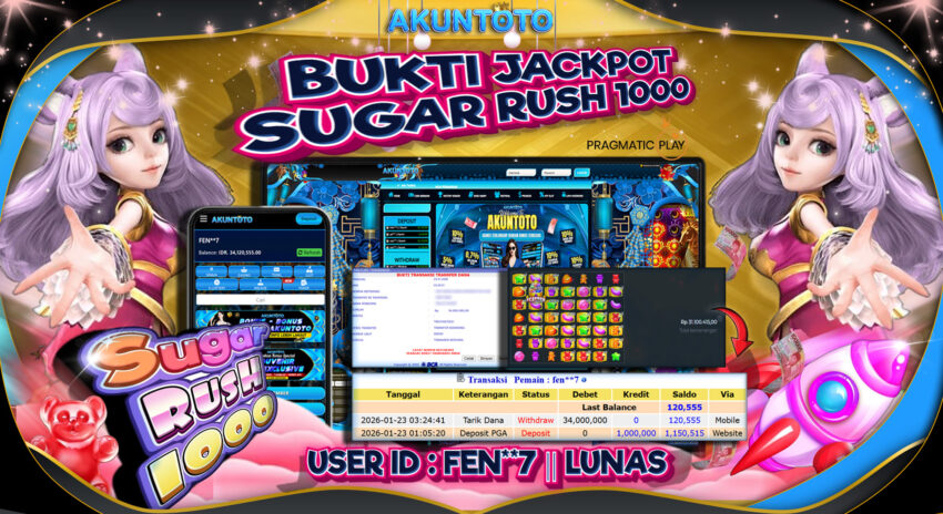 AKUNTOTO JACKPOT SLOT SUGAR RUSH 1000 RP 34.000.000 , JUMAT 23 JANUARI 2026