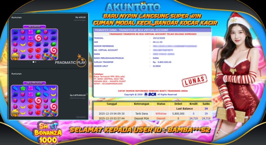 AKUNTOTO JACKPOT SLOTSWEET BONANZA 1000 Rp5.800.000 SABTU 20 DESEMBER 2025