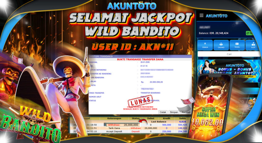 AKUNTOTO JACKPOT SLOT WILD BANDITO Rp 20.000.000 KAMIS , 29 JANUARI 2026