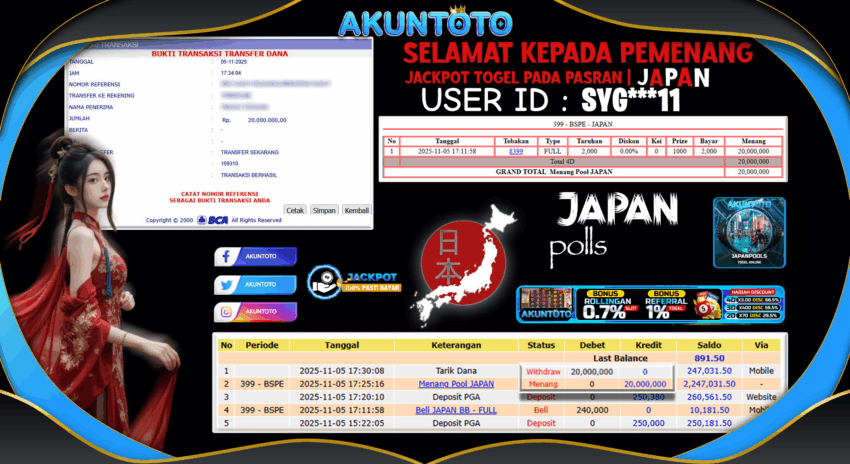JACKPOT TOGEL PADA PASARAN JAPAN Rp20.000.000 KAMIS 06 NOVEMBER 2025